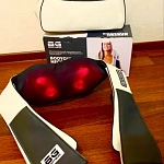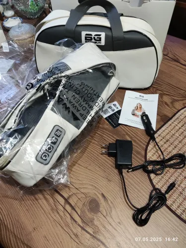 Товар пришел, хорошо упакован, выполнен качественно, приятно держать в руках, тяжеленький, сам аппарат в сумочке, удобно для хранения и при поездке. Массажер просто "Огонь". Массаж делает на отлично, вообще не ожидали, что такой будет эффект. Мышцы расслабляет, есть подогрев, не надо искать массажера, сел на диван, смотришь свой любимый сериал, а он работает, Великолепное изобретение, для домашнего использования!