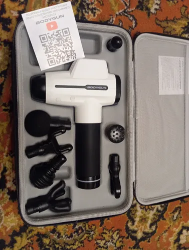 Действительно стоящая вещь, мощный, профессиональный перкуссионный массажер, с кучей насадок и добротным+ кейсом в комплекте. Приложена ссылка на видео по использованию. Достаточно тяжёлый, более 1 кг, но этот напрямую связано с высокой мощностью, более лёгкие не смогут "пробить" глубокие мышцы. Используем с супругой для массажа пятый день. Детям тоже очень понравился массаж перкуссионным пистолетом. Шум при работе тихий.